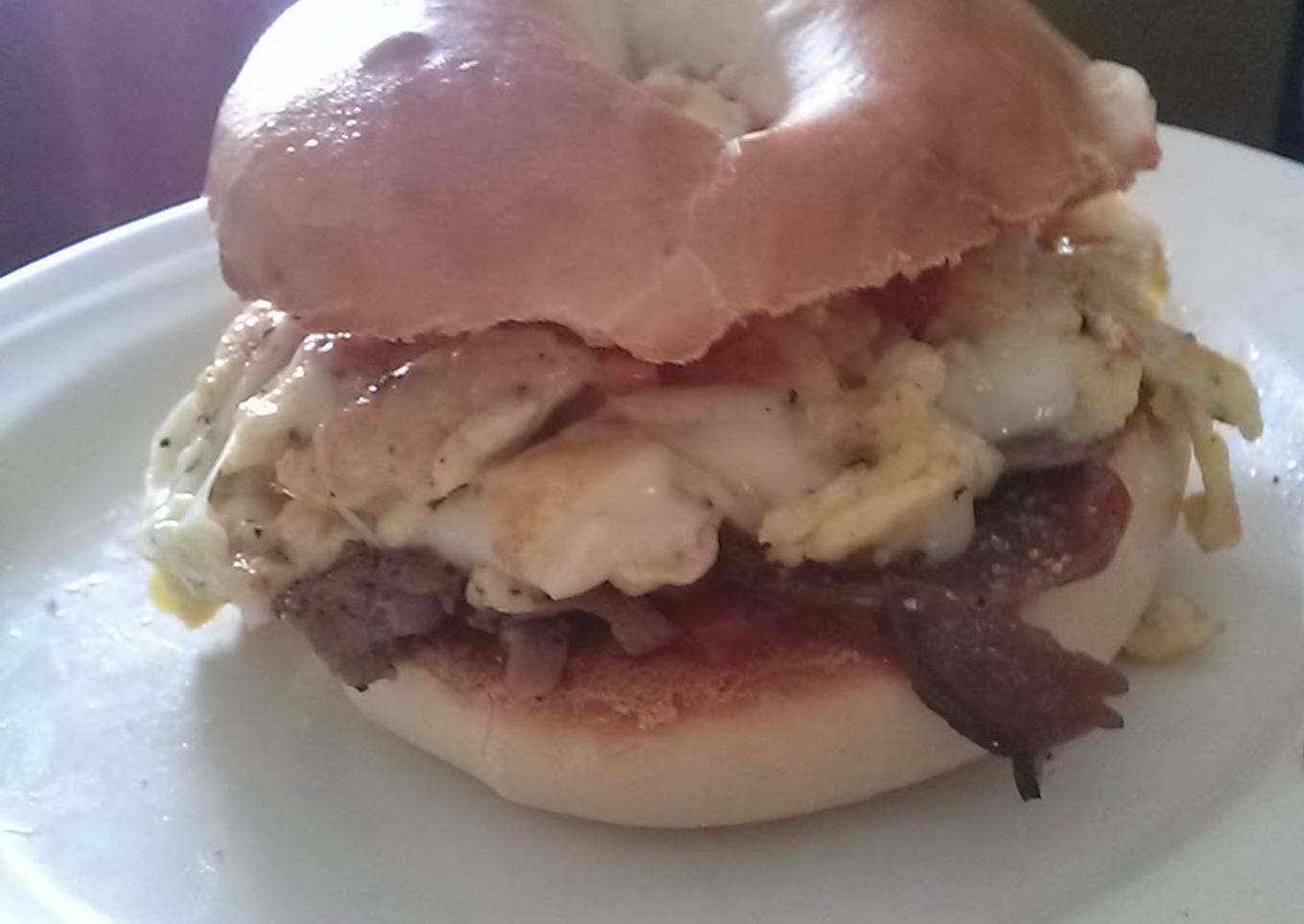 Steps to make Dean's Kick-Ass Egg, Steak, And Cheese Bagel.