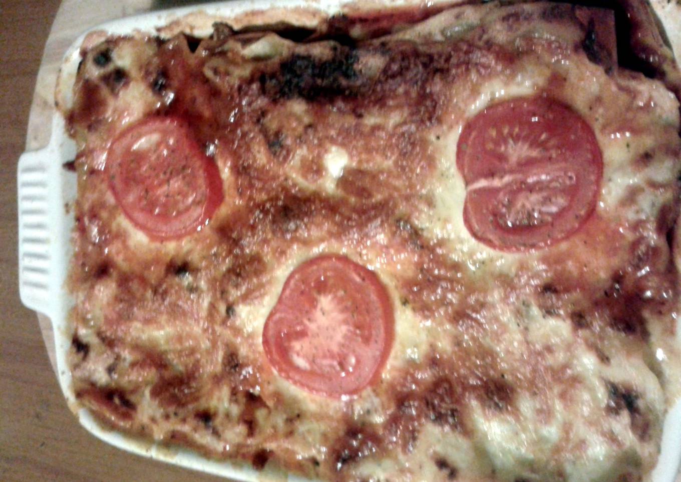 - When the lasagne is ready, place the baking dish on a wooden board or other protective surface on your table. Dig in and enjoy :)