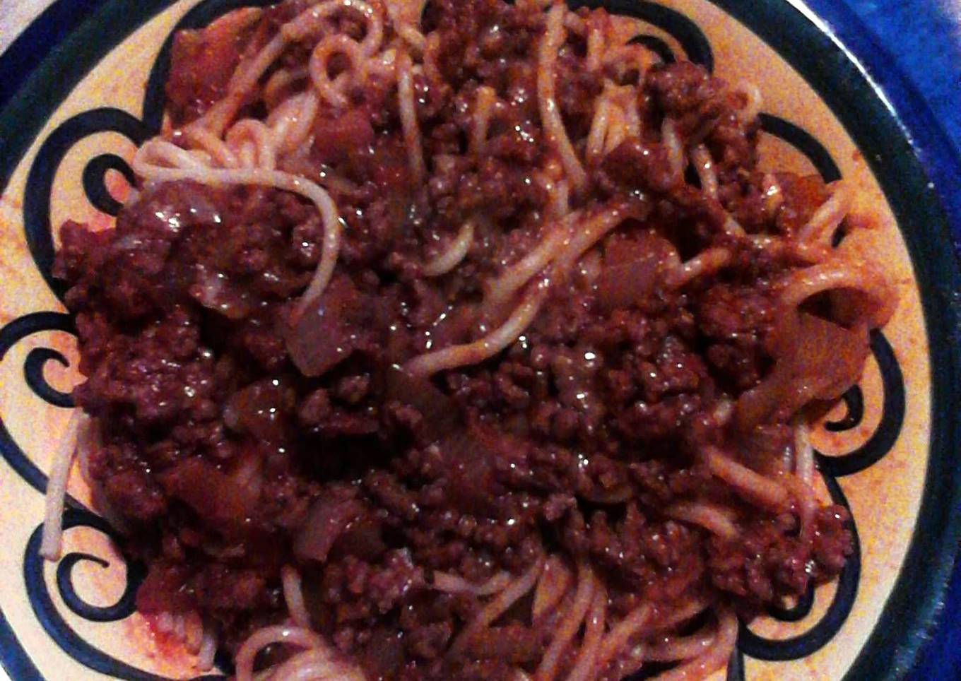 - once mince and onion are cooked stir in your pasta sauce, simmer for 10 mins.